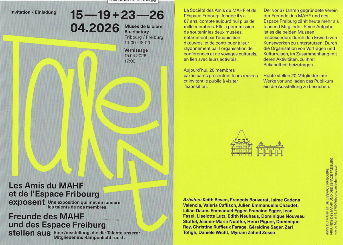 vernissage 4 décembre 14h à 16h à 1472 Lully/FR, route de Murist 19, voir le site internet de l'ABIES de LULLY- 8 décembre 2025, de 11 à 20 heures :
